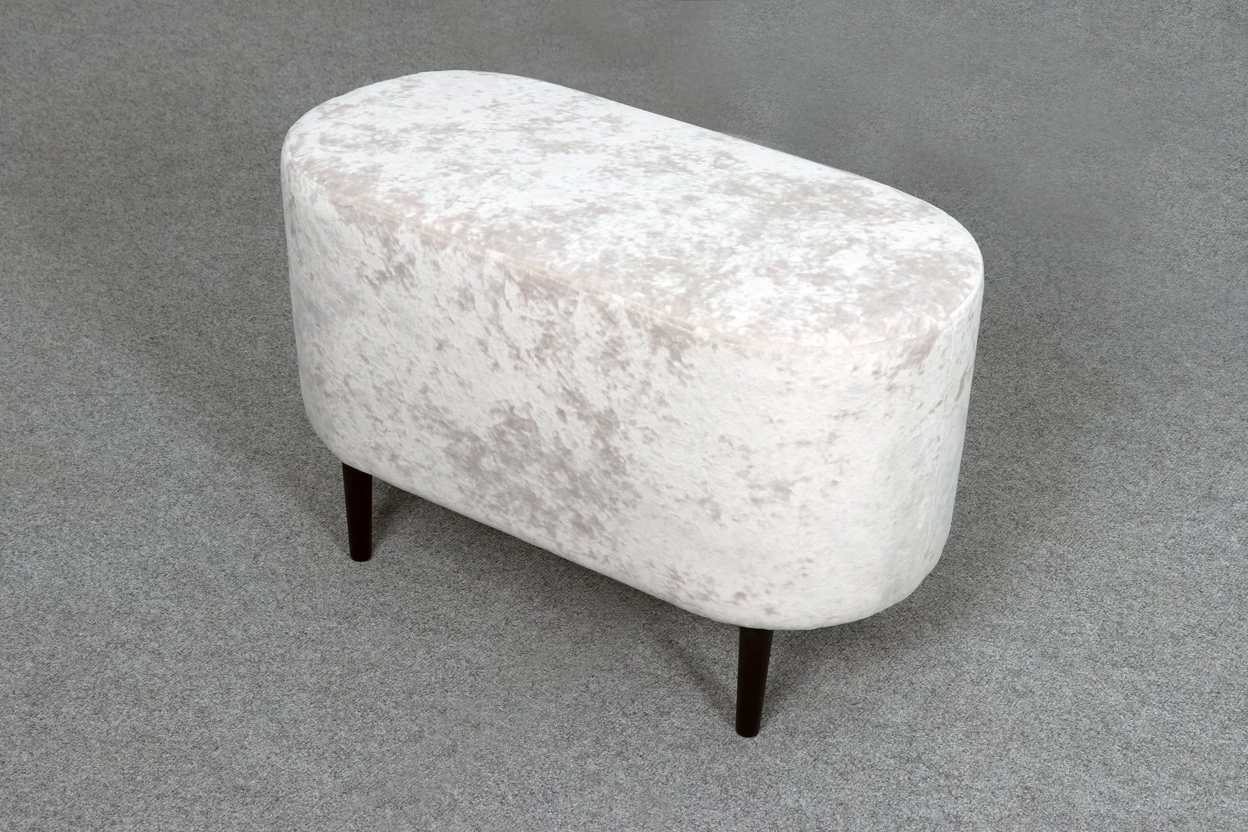 Мягкая обивка в ткани велюр с краш-эффектом добавляет приятный объем и украшает изделие. Опоры выполнены из массива берёзы и имеют защитные войлочные наклейки. Банкетка хороша не только в гостиной, но и в спальне, на кухне и в детской комнате. Максимальная нагрузка 100 кг.