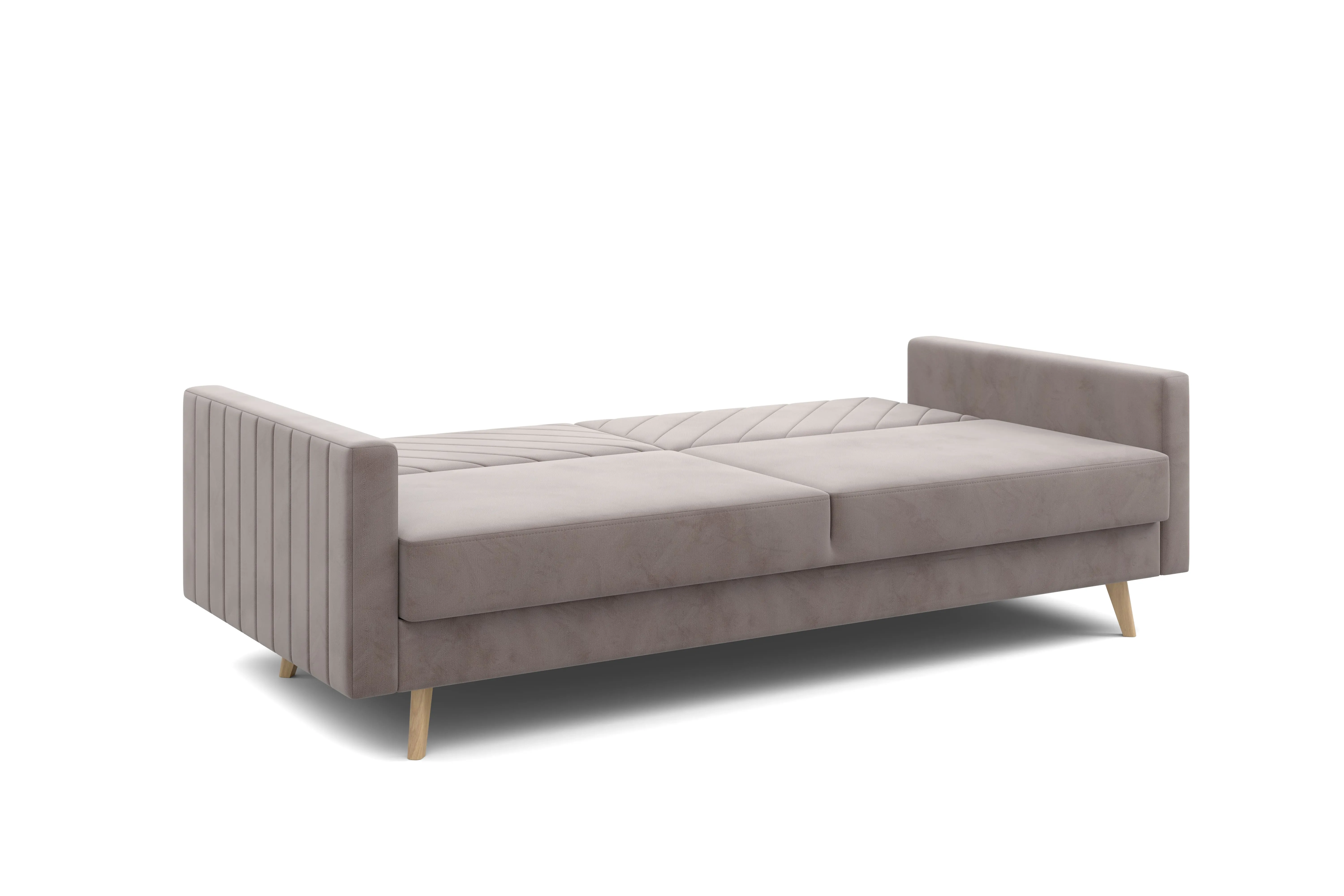 Обивка из велюра не только роскошно выглядит, но еще и практична в эксплуатации, а также имеет отличные показатели износоустойчивости.Высокие опоры из массива березы придают дивану визуальную лёгкость, декоративная отстрочка на подушках и боковинах придают приятный объем. Подушки из велюра контрастного цвета входят в комплект.