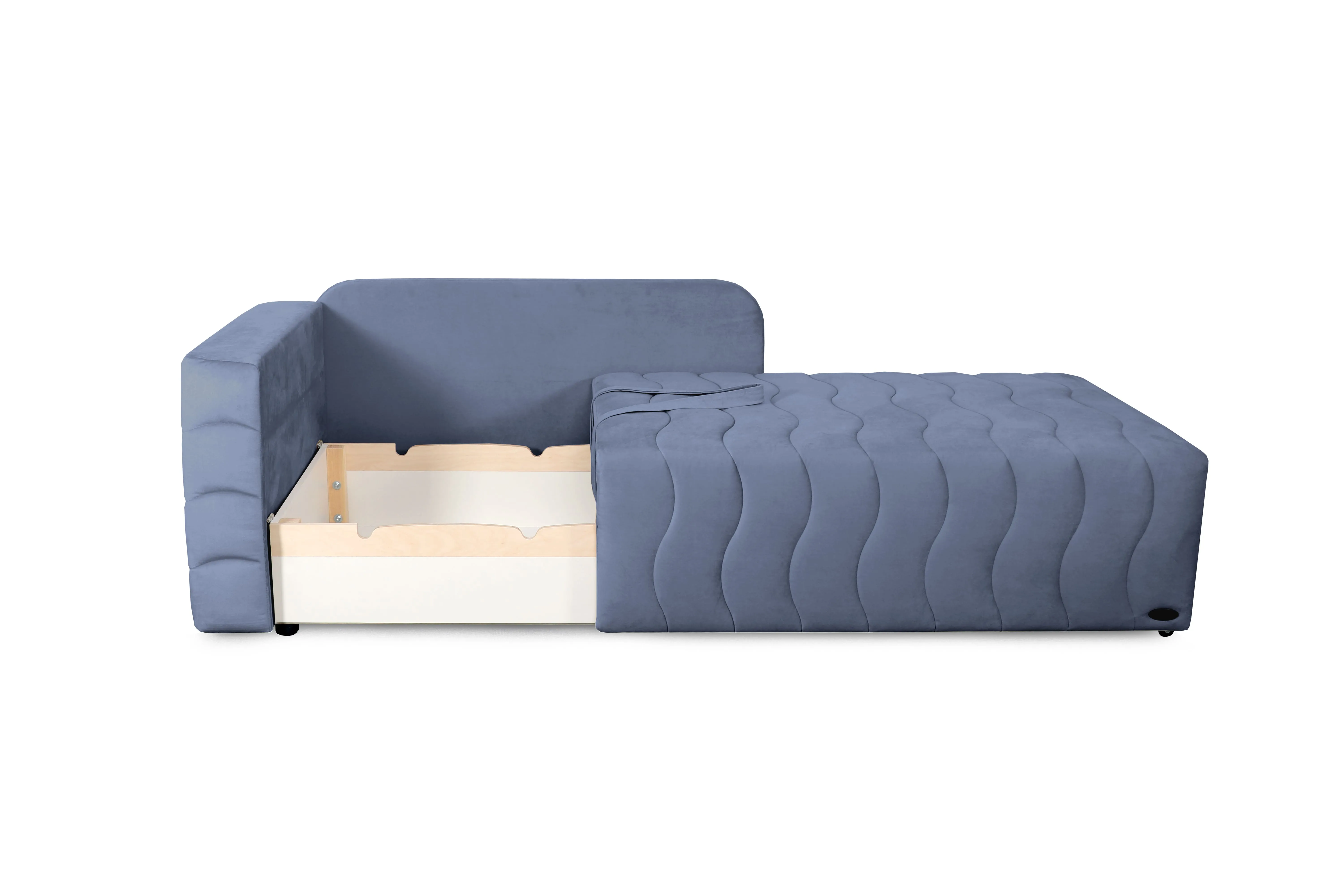 Диван при необходимости превращается в полноценную комфортную кровать, а вместительный бельевой ящик добавляет функциональности.