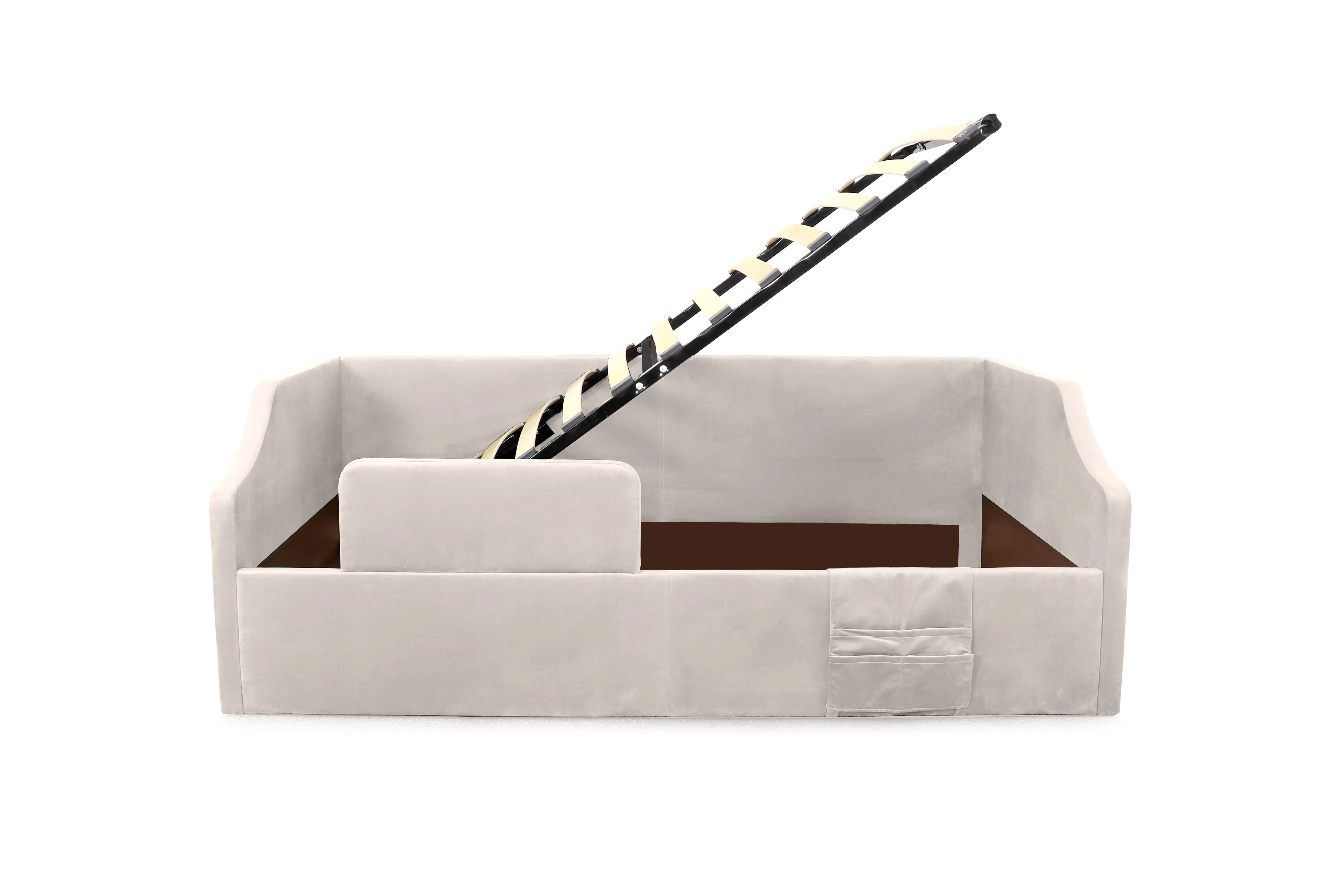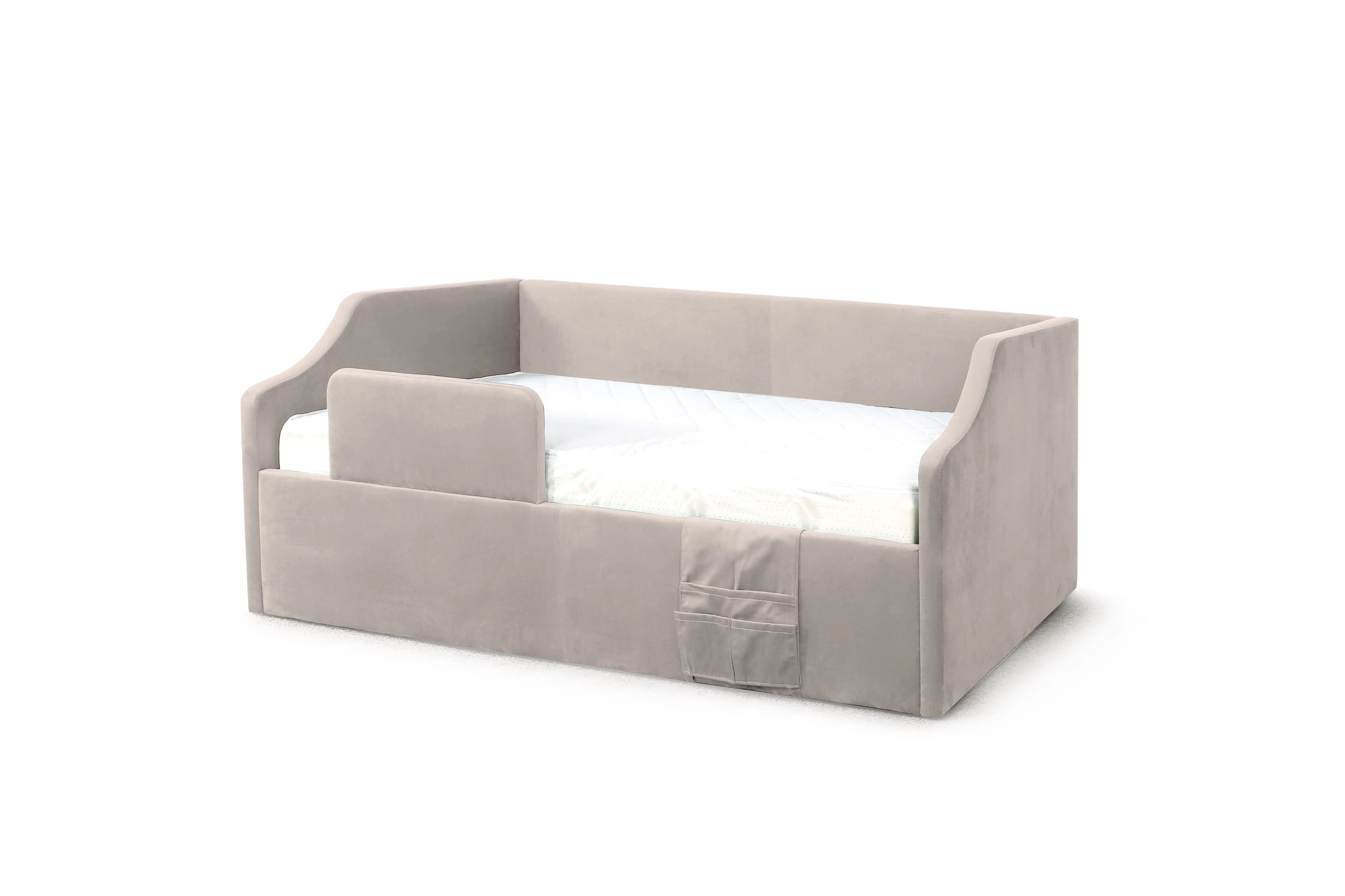 Дополнительно Вы можете приобрести защитный бортик и органайзер для хранения мелких предметов. Основание и матрас приобретаются отдельно от кровати.