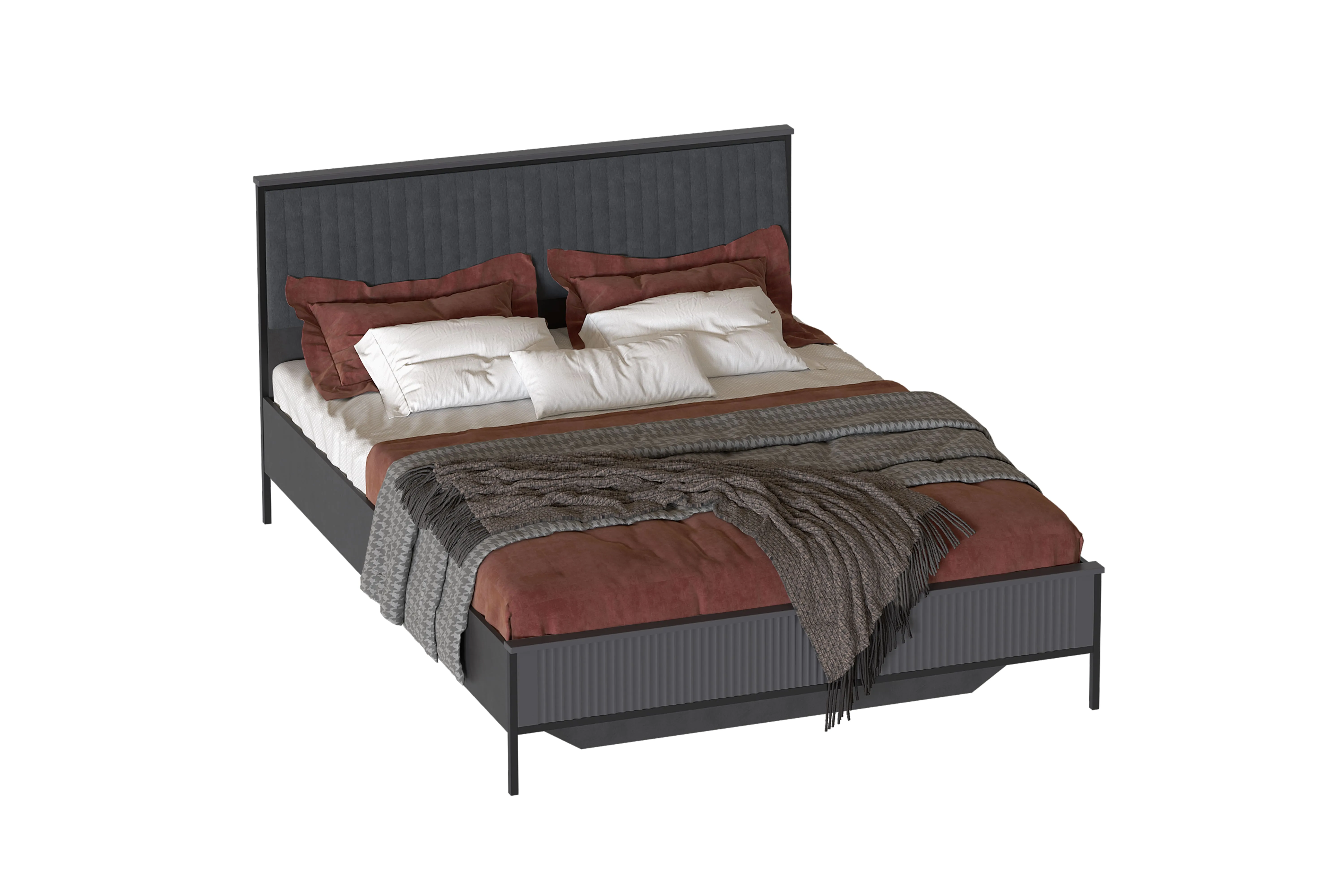 Кровать выполнена в двух вариантах исполнения: Металл Бруклин / Графит и Персидский жемчуг / Персидский жемчуг.