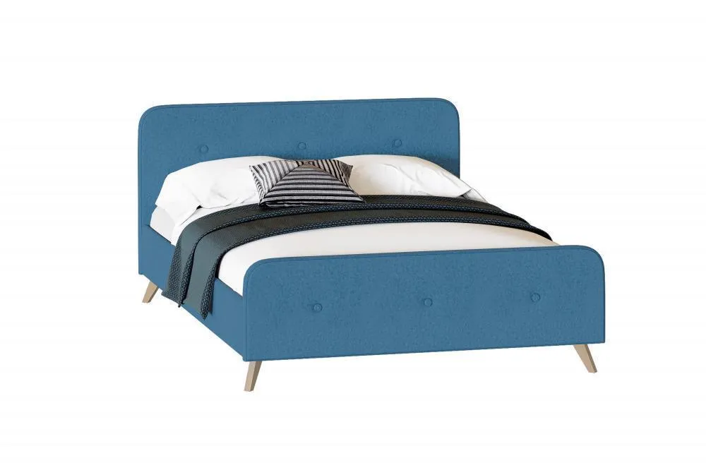 Изголовье имеет закругленный силуэт, обтянут велюровой тканью с пуговицами, что обеспечивает дополнительную мягкость и уют. Высокие стильные ножки из массива березы создадут ощущение легкости и воздушности.