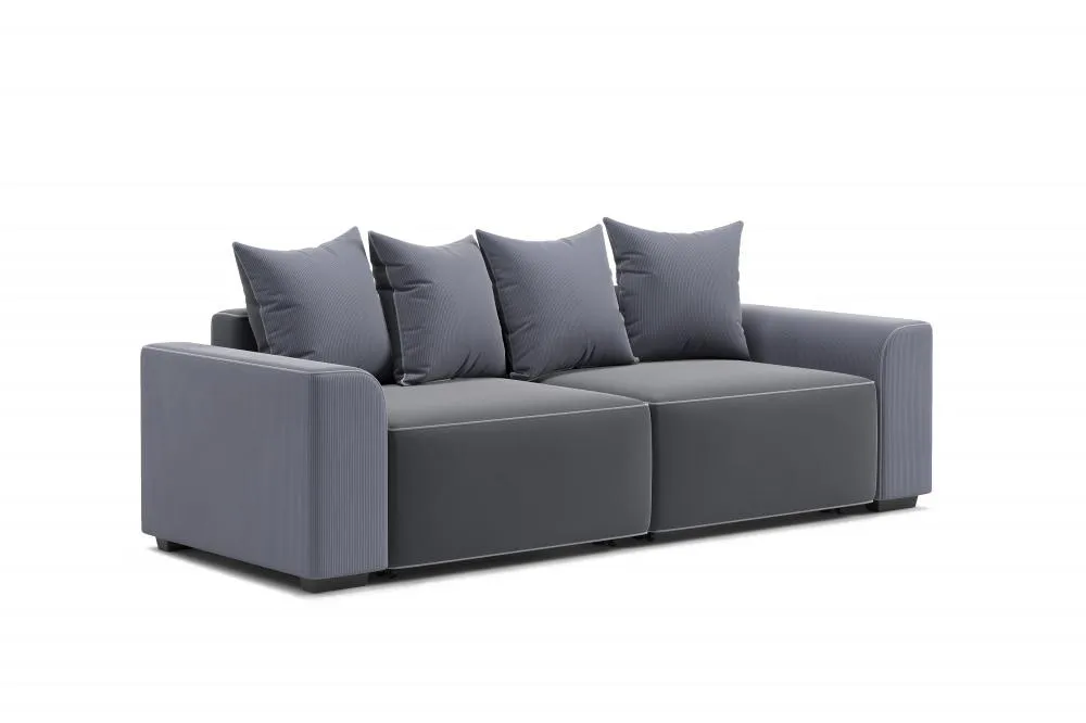<virtues>Покупала в нестандартном цвете: пыльно-розовый. Диван очень нарядный. Независимый пружинный блок - очень удобен в посадке. Приобретала дополнительные подушки в том же цвете. Можно разложить одну часть и получится как угловой. Хорошая велюровая ткань выглядит дорого и тактильно очень приятная, немного играет цветом. Два бельевых ящика, вместительные. Диваном очень довольна.</virtues> <limitations>Нет</limitations>