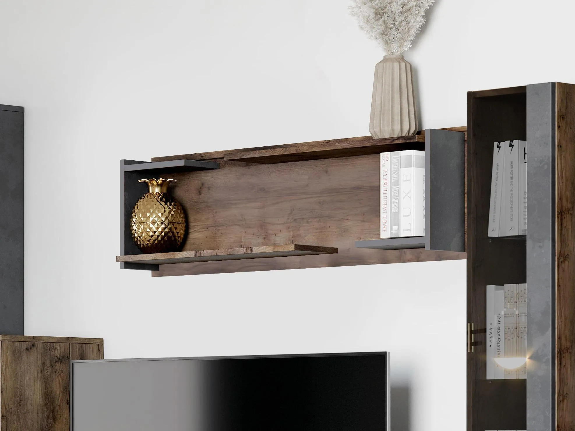 На полке можно разместить книги, фоторамки, вазы, статуэтки и другие любимые декоративные элементы.