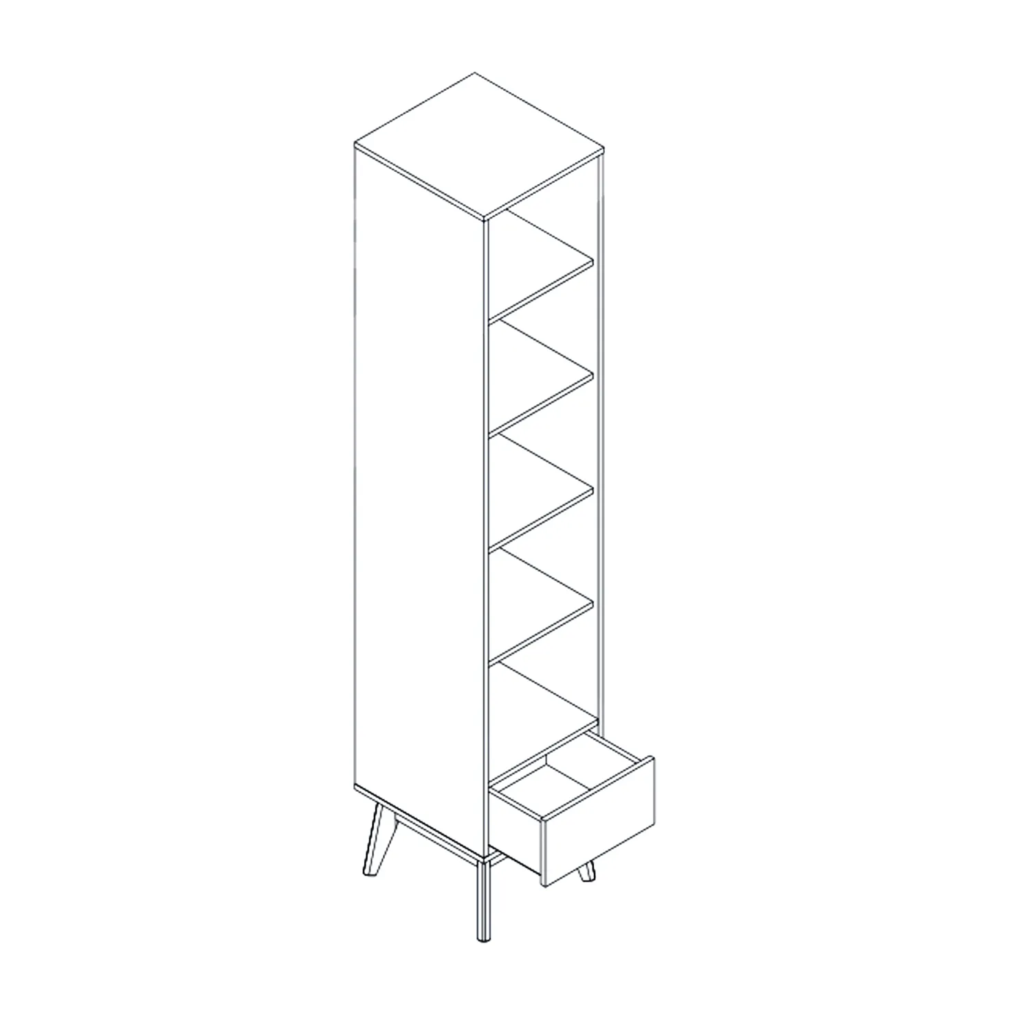 Шкаф с двумя отделениями. Верхнее отделение закрыто дверью, за которой расположены две стационарных и две съемных полки, в нижнем - размещен выдвижной ящик на шариковых направляющих.
