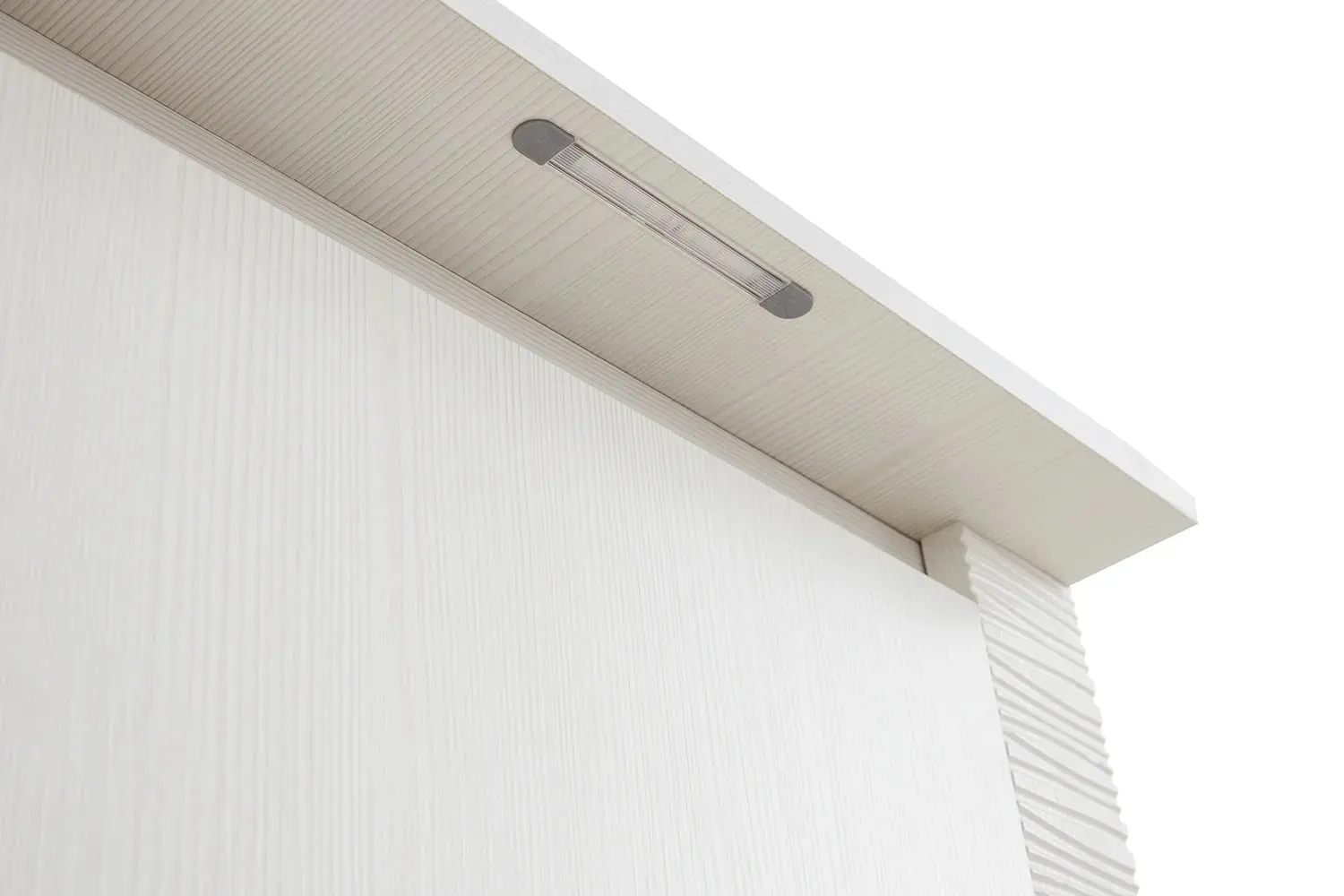 Трехдверный шкаф с зеркалом "Элана" оснащен двумя отделениями: для белья с четырьмя съёмными и центральной жёсткой полкой; платяное с жесткой полкой и продольной стальной штангой. В колпаке шкафа имеются пазы для двух светильников, входящих в комплект. Блок питания приобретается отдельно, и рассчитан на подключение шести светильников.
