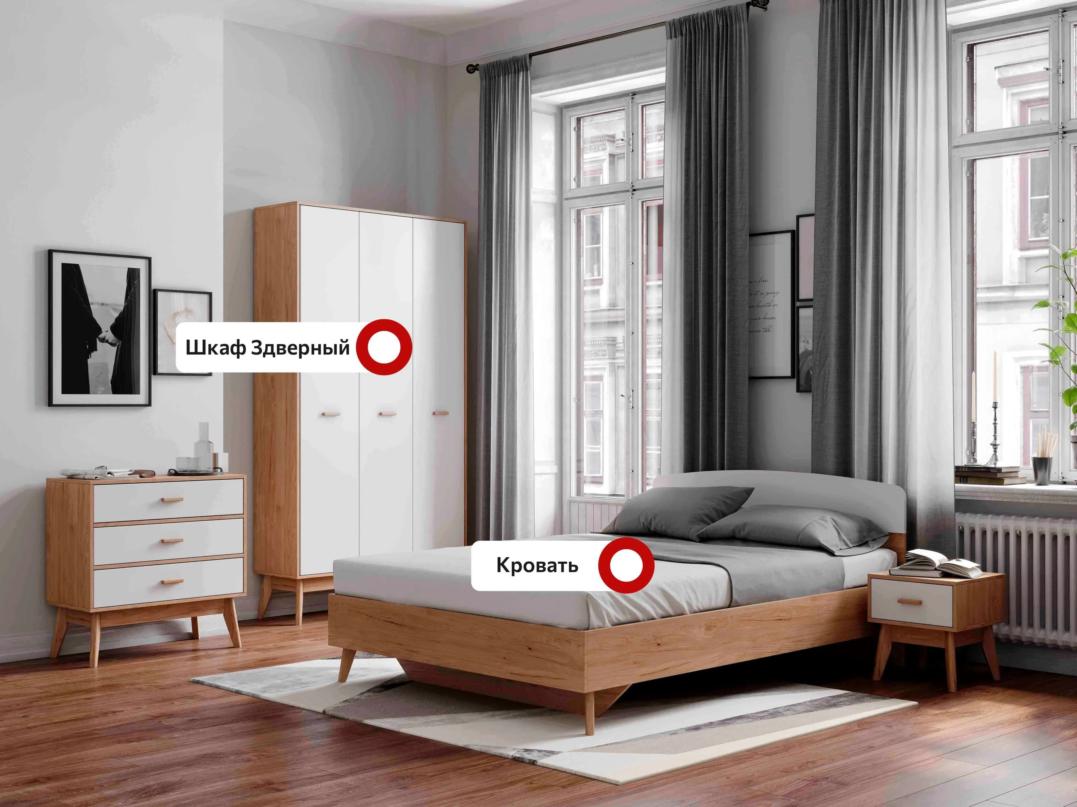 Гарнитур подходит как для просторных, так и для небольших спален, помогая эффективно использовать пространство и создавать уютное и светлое место для отдыха и сна.
