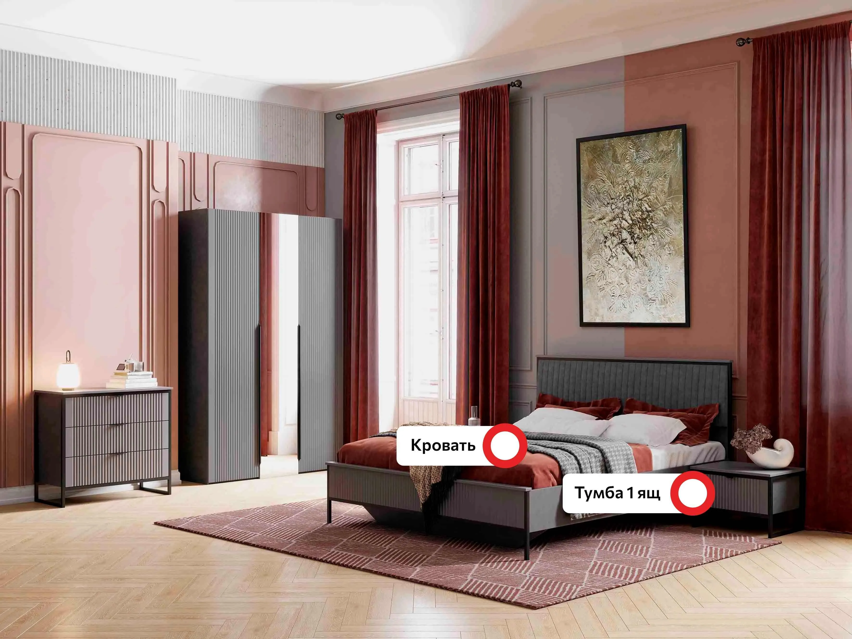 Гарнитур подходит как для просторных, так и для небольших спален, помогая эффективно использовать пространство и создавать уютное место для отдыха и сна.