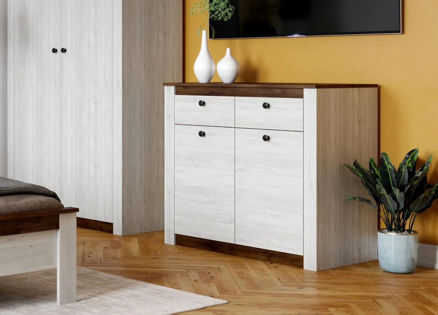 "Даллас" имеет две двери и два выдвижных ящика, что позволяет удобно хранить вещи и поддерживать порядок в комнате.