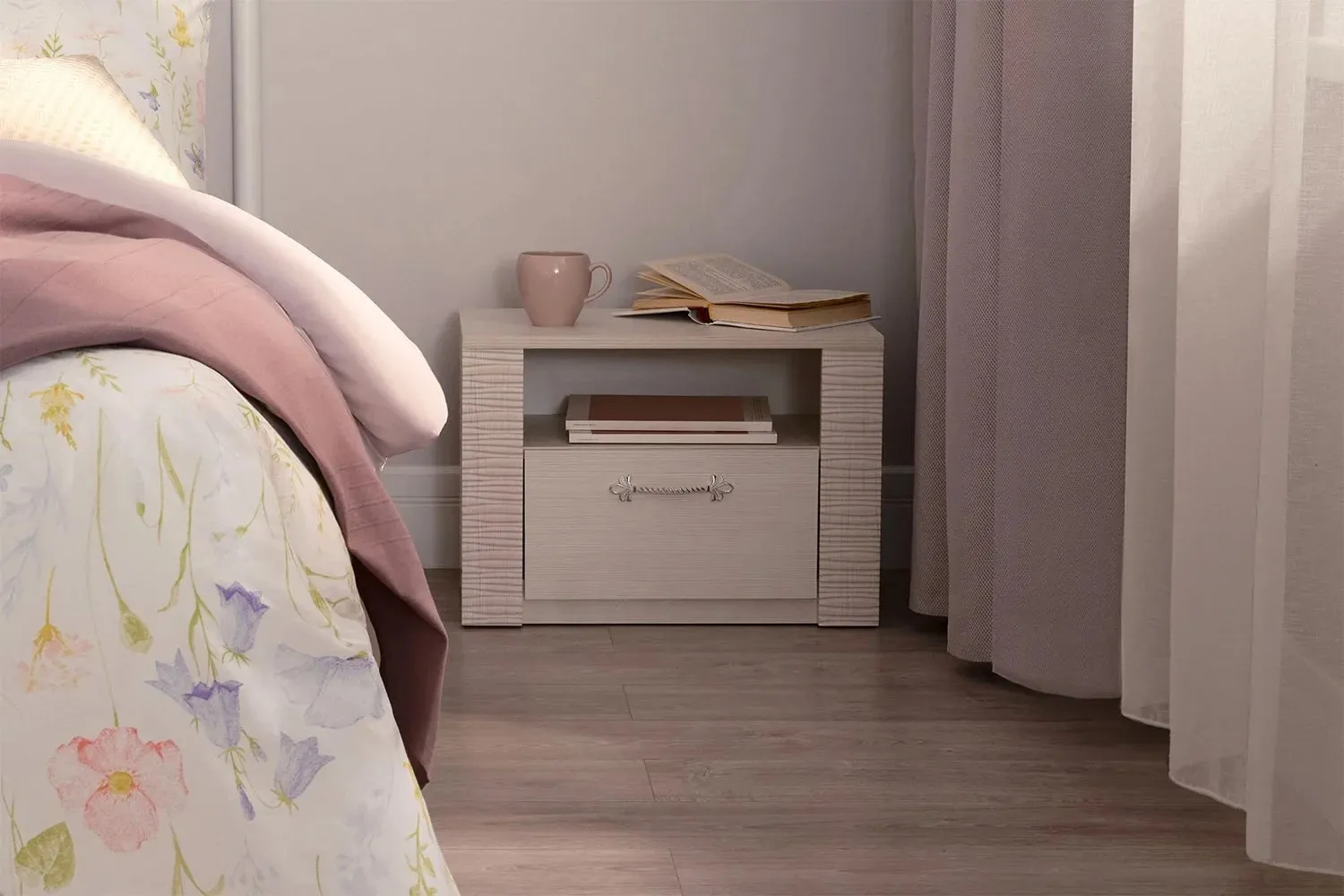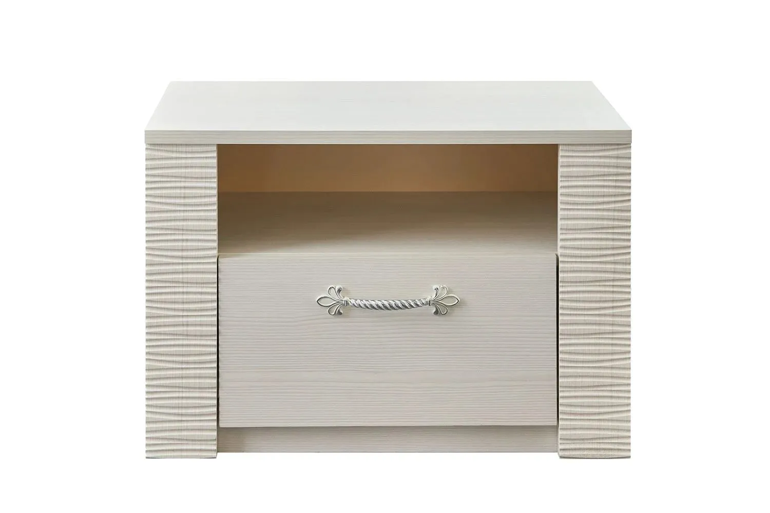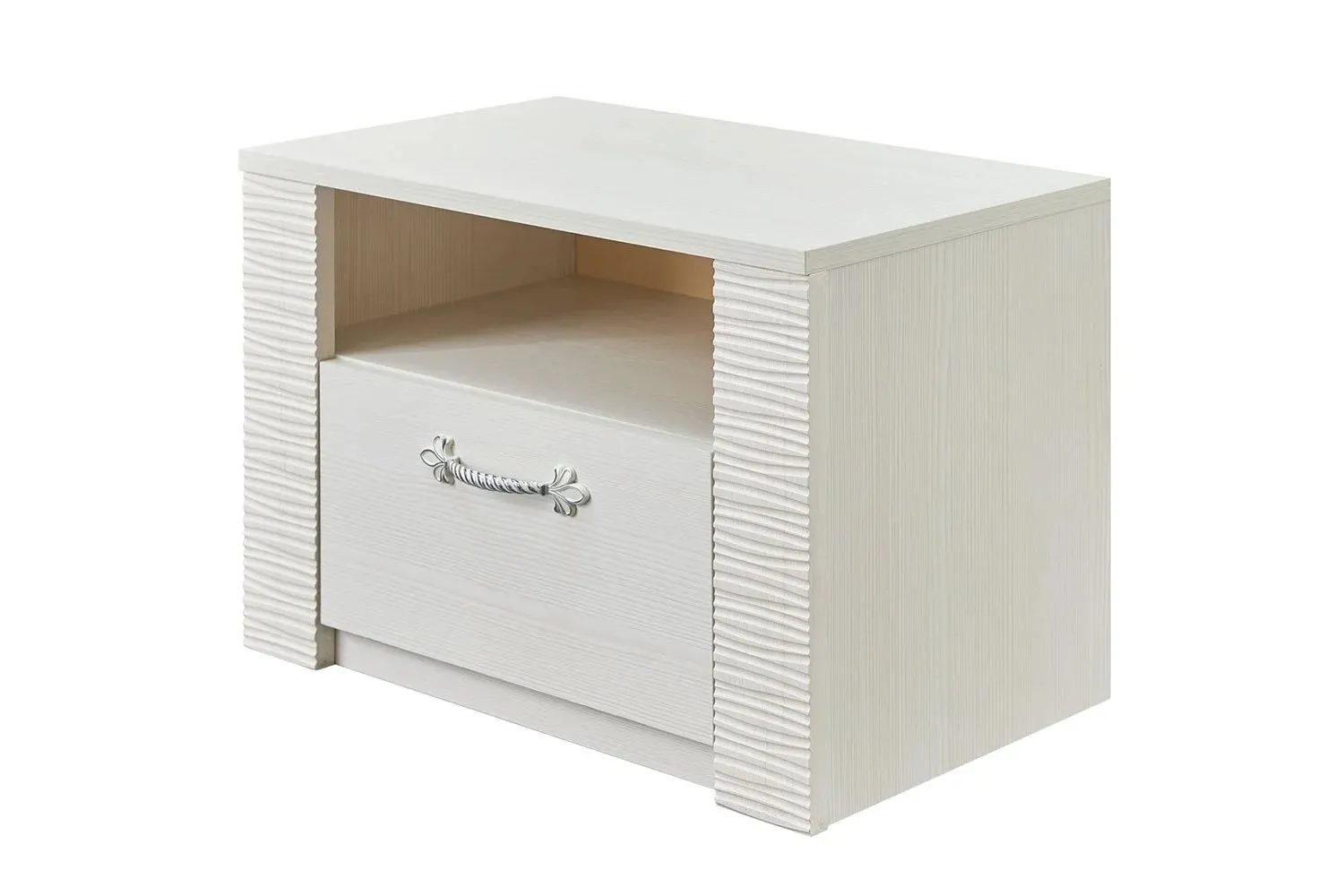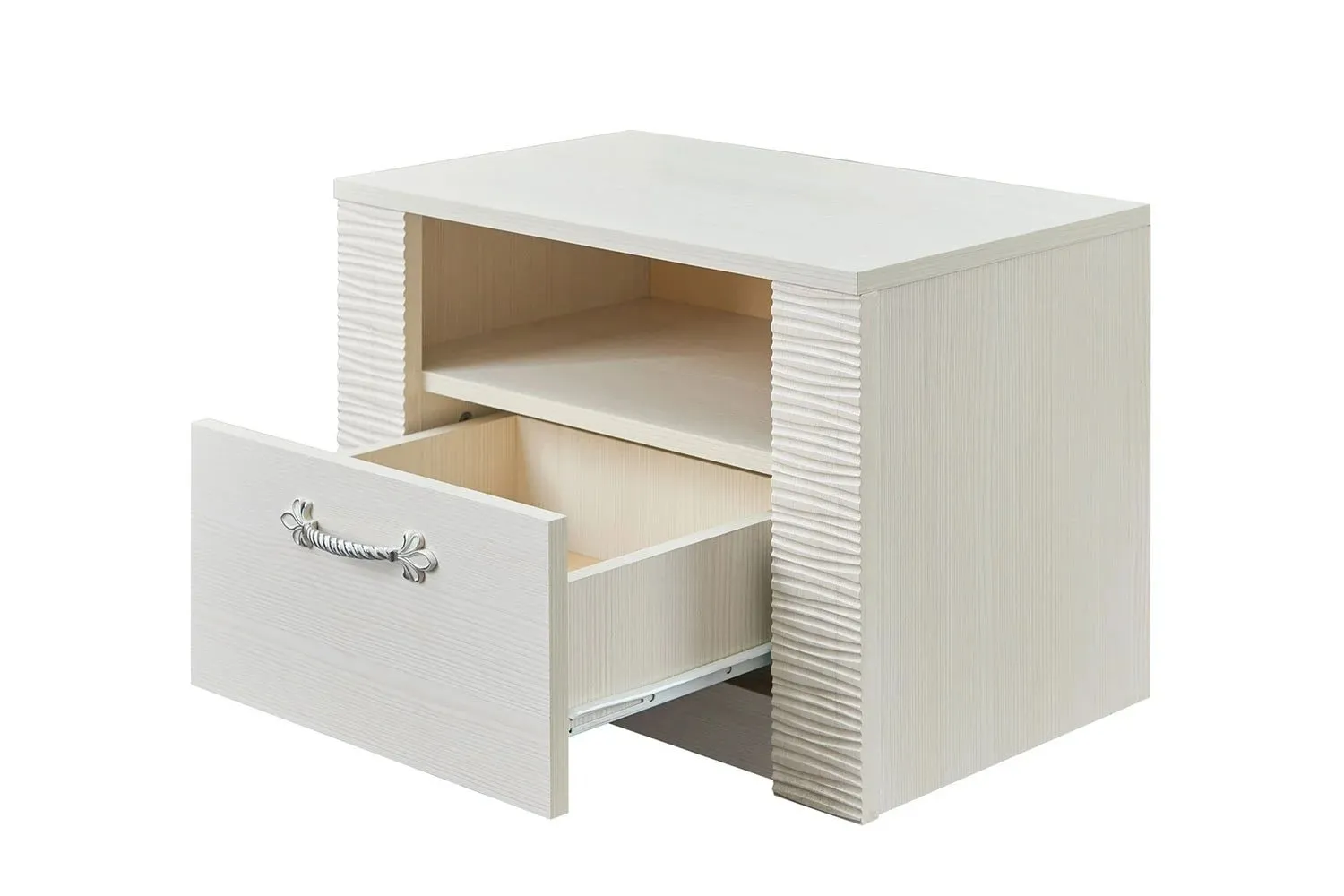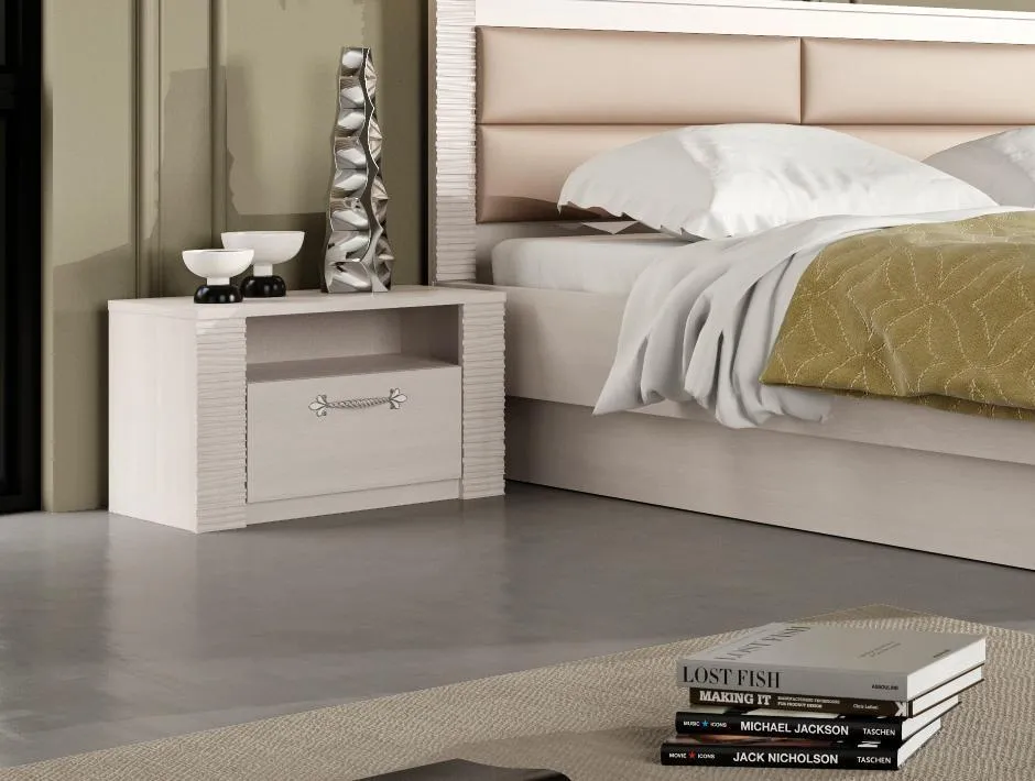 Прикроватная тумба "Элана" имеет открытую нишу и оснащена выдвижным ящикам на роликовых направляющих.