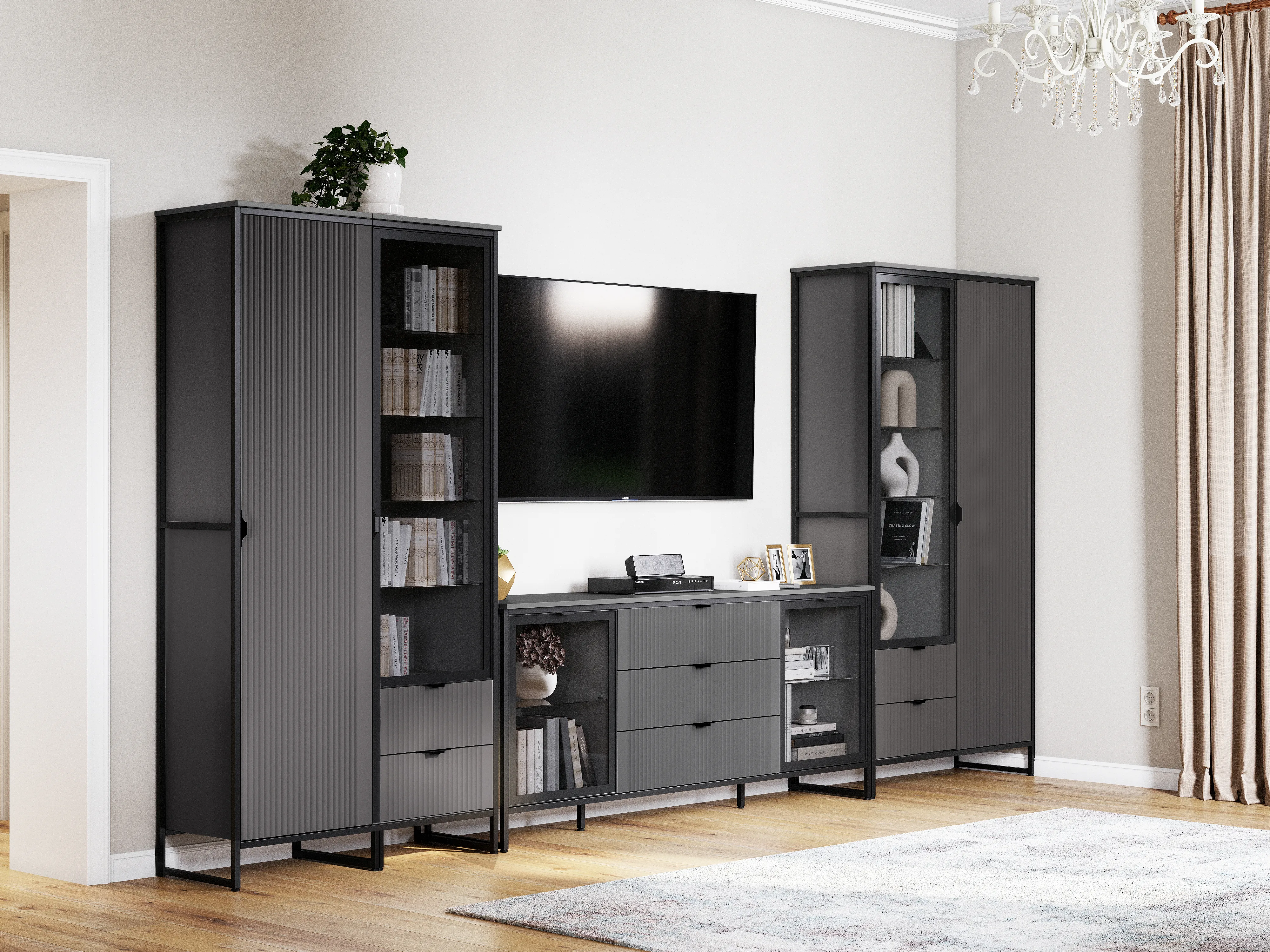Тумба 2 дв 3 ящ "Нора" гостиная со стеклянными дверями Графит