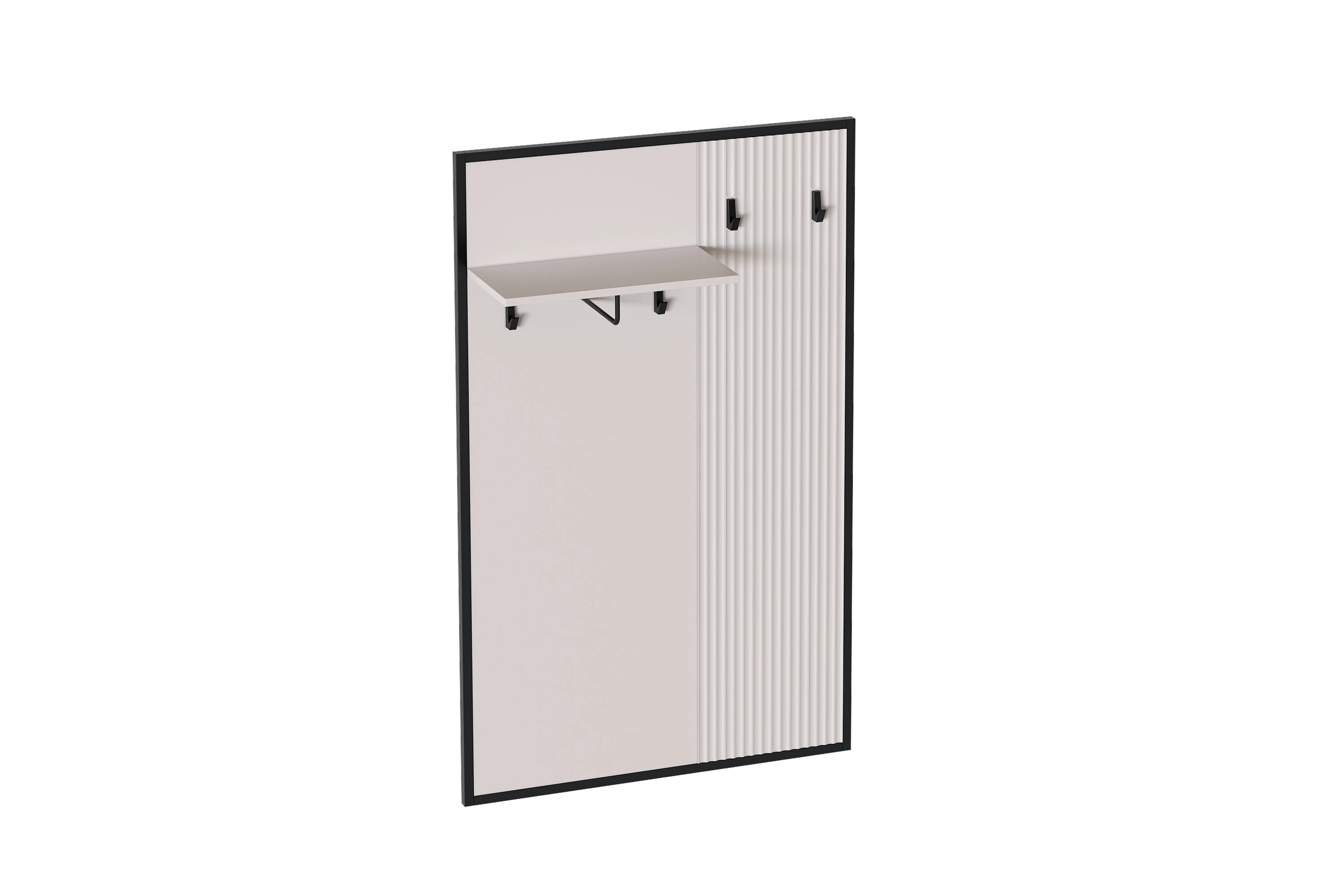 Вешалка «Нора» имеет 4 крючка. Под полкой установлен кронштейн для навешивания плечиков. Конструктивные особенности вешалки предусматривают ее сборку в правом или левом исполнении.
