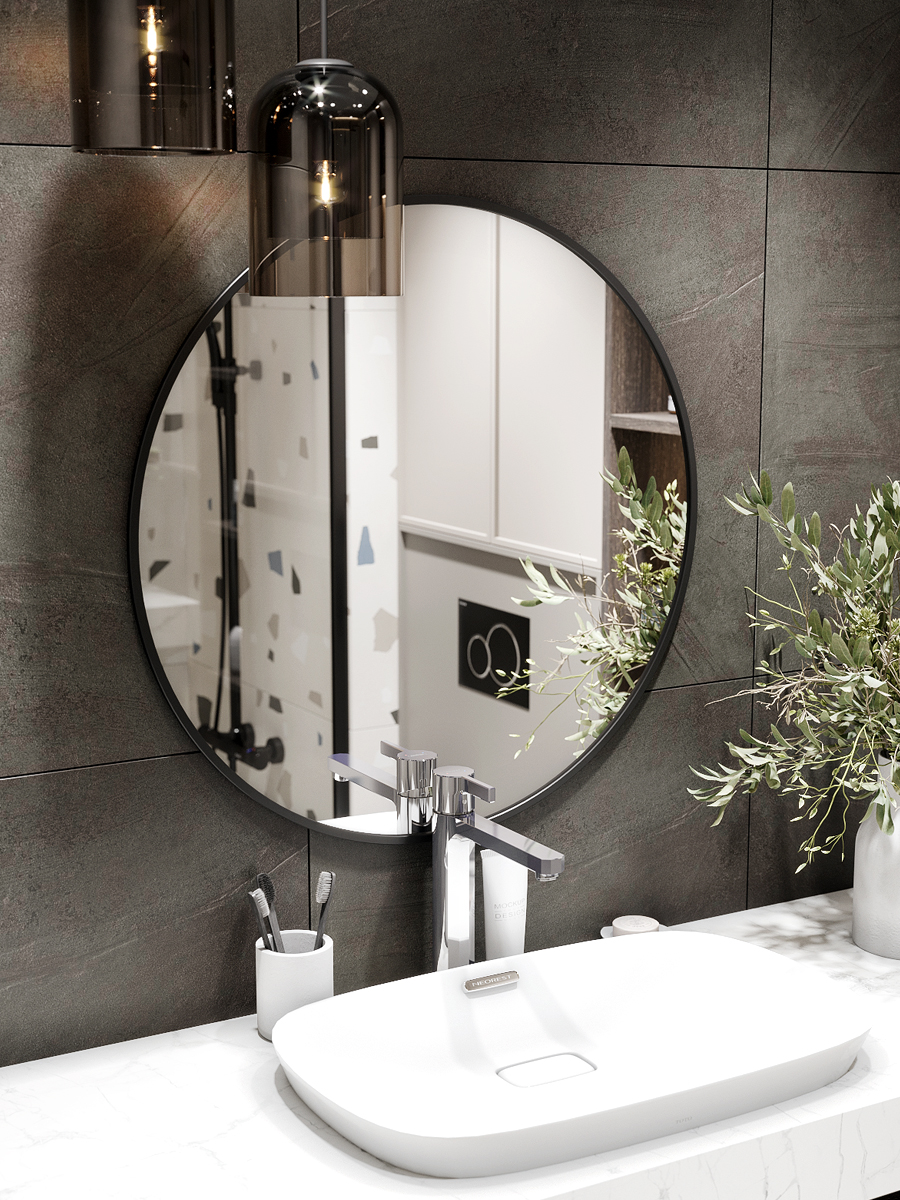 Зеркало навесное Z-15 D70 см c черной рамкой