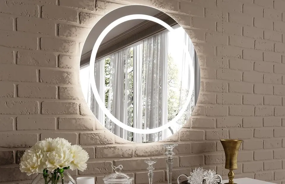 Зеркало с подсветкой - это стильный и функциональный элемент интерьера, который обеспечивает качественное отражение и освещение. Круглая форма придает ему изысканности и визуально расширяет пространство.